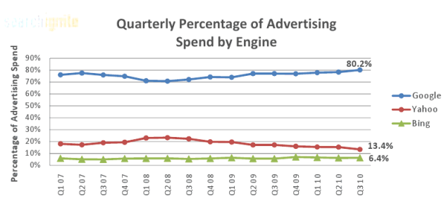 Google commanded no less than 80.2% of all U.S. PPC ad spend in the third quarter, picking up 2 percentage points even compared to last quarter.