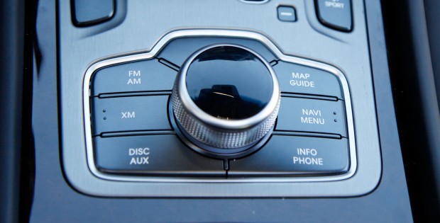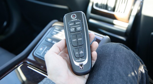 Slightly forward of the center console is the controls for anything you could need. You can mess with the privacy screens, front passenger seat position, XM channels, and Aux-in music. In addition, you can turn up the entire cabin’s temperature and volume — which can get annoying if there are smartasses in the back. To be sure that you see what you’re controlling and improve rear entertainment quality, there is a neat high-res flip-up screen that rotates out from the front center console.