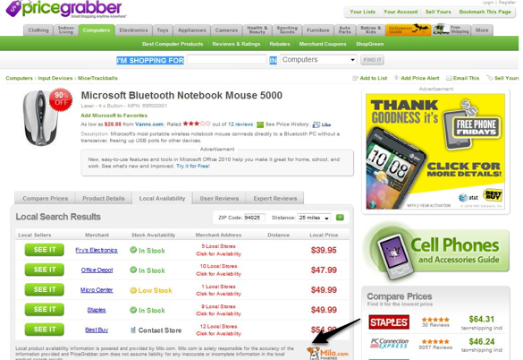 Milo.com tracks the real-time availability and prices of more than 3 million products at over 50,000 stores across the U.S. And the PriceGrabber deal is the first use case of Milo’s technology on other shopping platforms. Now, when shoppers go to PriceGrabber and search for an item, they’ll see a “Check Local Availability” button at the bottom of the results if the item is available locally. Clicking that returns local results that are powered by Milo, who gets paid by PriceGrabber on a cost-per-click basis. So far, almost 1 million products have been integrated between Milo and PriceGrabber.