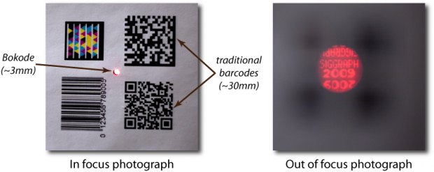 The second project Raskar demonstrated was a system called Bokodes, a microdot that is invisible when its in focus but is clear when you defocus the surface. This means you can create a tiny tag that is completely invisible until you “don’t” look at it. The system can be used to test eyesight as well.