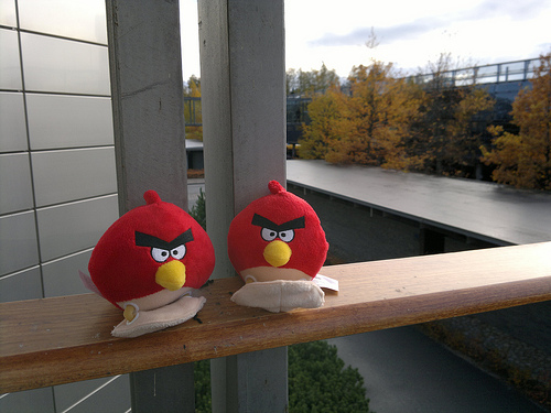Angry Birds, a game that inexplicably has won the hearts and minds of millions (I still prefer Crush the Castle) is apparently coming to a toy store near you. These two birds, shot at Nokia HQ with a Nokia N8, can be flung across the room using slingshots at local pigs who have stolen your nest.