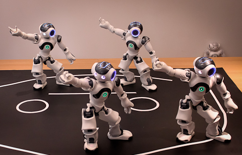 The picture above shows four NAO robots posing during a press conference in Tokyo earlier this week (click here for an extensive picture gallery).