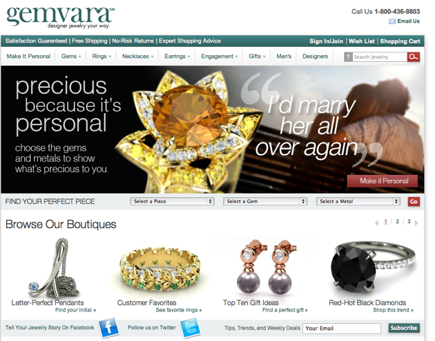 First, some stats: Lauzon says that Gemvara, which was previously known as Paragon Lake, has grown from around 20 employees last April to 40 today, and is on pace to close the year out with 60. The average order size has been nearly $1000, and the site is now drawing 2 million page views a month. Lauzon says that Gemvara’s revenue has doubled every month or two since launching in February, and its sales this holiday season will top what an average jewelry store sells in a year. He expects to close out the year with North of a $10 million run rate.