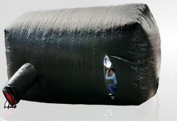 Our buddy Charlie found this great Inflatable Photo Studio designed for photographers who want to, for some reason, have a controlled environment outside. It’s basically one of those big bouncy castles without the bouncy part. Before you get too excited, however, remember this thing could kill you. From the fine print: