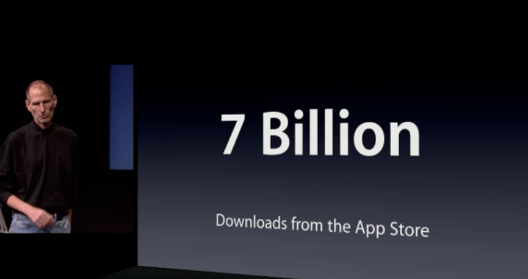 In announcing the new Mac App store at an event in Cupertino today, Steve Jobs revealed that Apple has hit 7 billion iPhone and iPad downloads from the iOS App Store. This is notable as the Apple just announced 6.5 billion App Store downloads in September, a 3.5 billion jump in 8 months from January. Gulp.