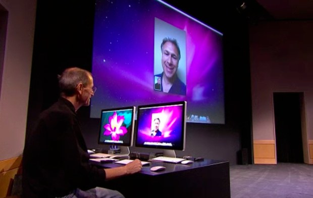 Apple is busy running through all the new bells and whistles of iLife. It’s actually quite boring. But if you look close when the demo machine shows its dock, there’s a Facetime icon present, which seems to state that video chat service is coming to a Mac near you real soon.