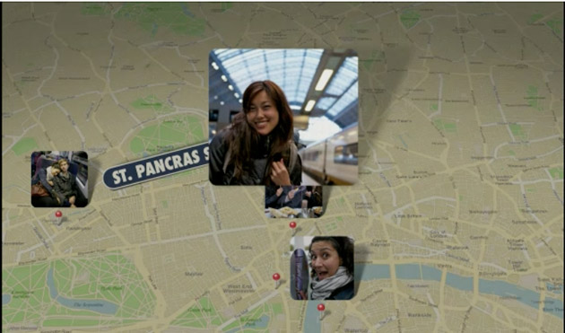 In iPhoto: Fullscreen Faces and Places, new slideshow themes (this one below is called Places):