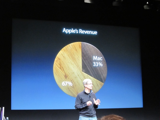 Of all of Apple’s revenues, Macs represent 33 percent of the revenues in the past year. This means the Mac is a $22 billion business. This means that if Apple were to spin off the Mac business, it alone would be the number 110 business in the Fortune 500 list of companies, Cook noted. “We have no plans to do that,” he joked.