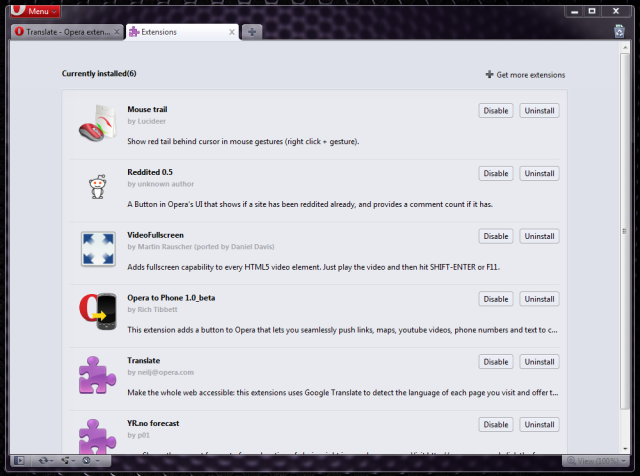 Extensions will allow users to customize their browser by adding features and functionality directly into the browser itself, rather than as standalone Opera Widgets or Opera Unite applications.
