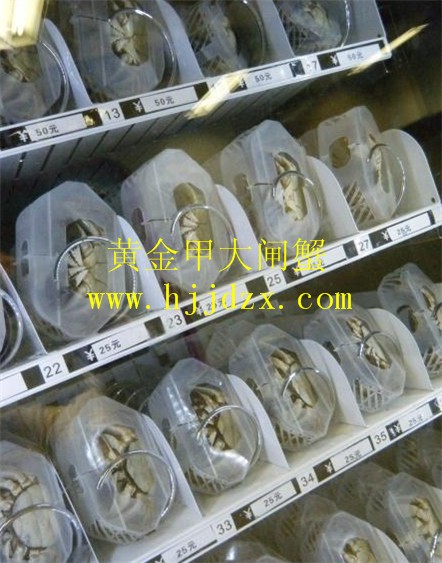 A sign in front of the machine promises 100% customer satisfaction: if buyers get a dead crab, the maker (a Chinese company based in Nanjing whose name I couldn’t decipher) promises they’ll get three crabs for free.