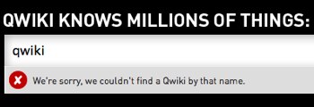 In other words, the site turns up no results for the query “qwiki,” and apparently a lot of first time users are using that as a test query. Just like lots of people type “google” into Google, or “wikipedia” into Wikipedia. And, yes, a surprising number of you also type “techcrunch” into our own search box.
