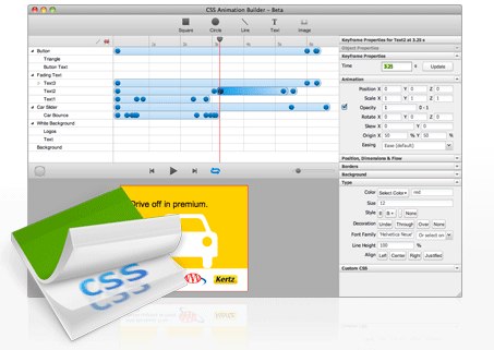 The application is available for Mac, Windows, and Linux. It’s still rough around the edges — this is a beta release, and additional features, like a gradient maker, are still in the works. It also doesn’t support some major browsers like Firefox yet (Sencha says that Firefox hasn’t implemented support for CSS3 keyframes). You can see some demos of HTML/CSS-based animations at the bottom of this page.