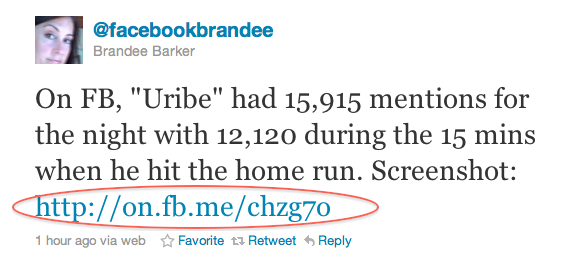 Have you noticed the URLs on Twitter and elsewhere with the “on.fb.me” domain? Those are actually Facebook links that have been shortened by Bit.ly. Don’t believe me? Just add a “+” to any of the on.fb.me domains and you’ll be taken to a Bit.ly page with detailed analytics for that link. For example, try this one that Facebook’s own Brandee Barker sent out on Twitter recently.