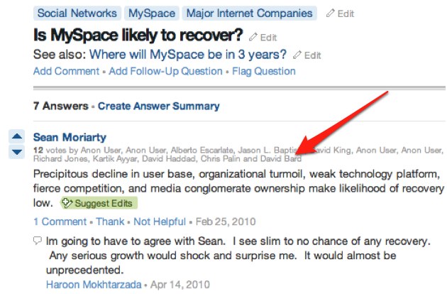 At least MySpace has one thing going for it – senior employees who are willing to speak their mind, whether it’s sharing internal data with us or upvoting comments on Quora. Most Yahoo’ers always waited until after they’d left to really unload on their former employer.