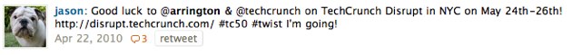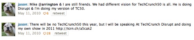 This will also put you guys in the clear with regard to your use of the IP in Disrupt, which right now I’m obviously not happy about. In fact, many folks asked me last night if the Disrupt conference was the rebranded TechCrunch50. Very frustrating as you might imagine!
