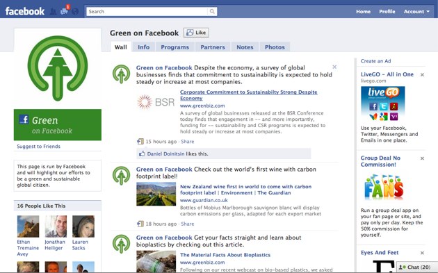 The Green page is just part of Facebook’s increasingly aggressive campaign to ratchet up its sustainability efforts— or at least broadcast its green agenda to the public. This Thursday morning, Facebook also announced that it has joined the Digital Energy Solutions Campaign (DESC), a consortium of NGOs, regulators and consumers that promotes energy efficiency in the information and communications technology sector. DESC will be the first co-administrator for Facebook’s Green page, which will eventually feature other environmental experts as co-administrators.