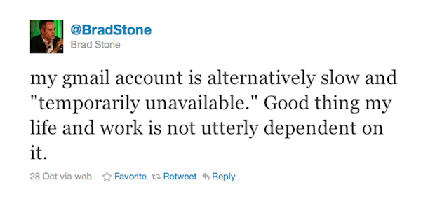 Others, meanwhile, are reporting that service seems to be working fine. But again, I’ve gotten too many responses from destinations all around the world to think this is isolated. At first I thought it might be just happening to people with massive inboxes (I’m over 10 GB now used), but I’ve spoken with a number of people who use a small amount of their storage and they’re seeing the same thing.