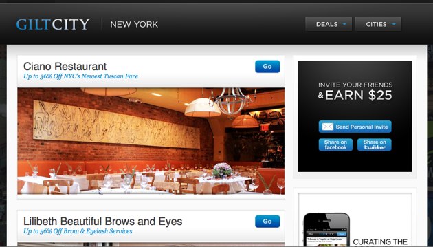 On the contrary, the service has done very well in attracting new users and offering luxury deals, like spa packages with free jet rides and discounted gourmet dinners. According to Gilt, City is their fastest growing vertical, ahead of children and home. But, as the results indicate, there does seem to be something off with the pitch and how Gilt orchestrates buzz around its City deals. The site will have to work harder to crawl out of Groupon’s shadows (which also frequently offers spa packages and gourmet dinners), differentiate its offerings and build legitimate excitement around the City brand, the way they’ve been able to execute on women’s and men’s apparel. Perhaps its in the formula, the marketing, the pricing, the structure of the deal (for example the lack of time sensitivity, as deals can be open for days), but it’s missing that awe factor— the intangible feeling of got-to-buy-it-now.