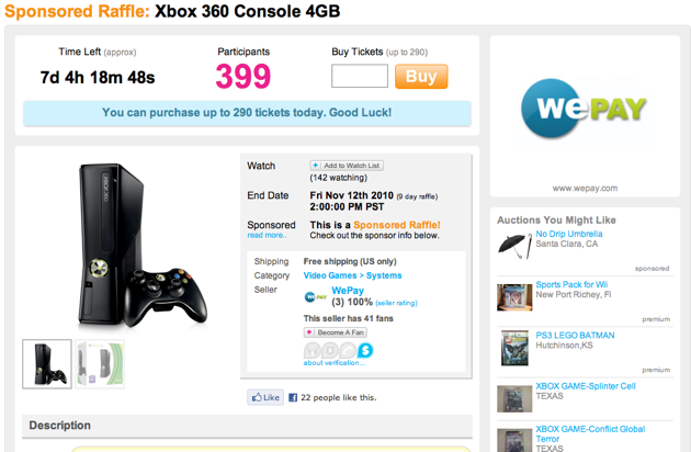 You can see the first Listia raffle, which is being offered by fellow YC-alum WePay right here.
