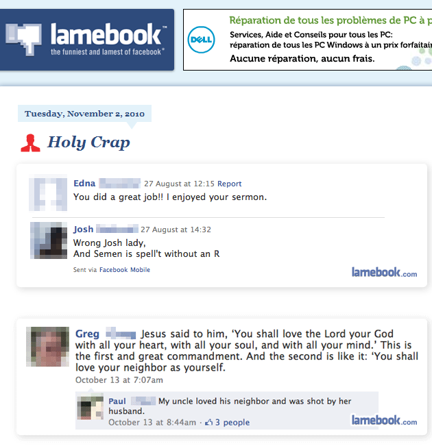 According to the complaint, Facebook counsel first contacted Lamebook back in March 2010, asking them to cease and desist using the Lamebook mark and change the name and look of its website. They repeated this request several times over the next few months and are now threatening to take the small company to court to get their way.