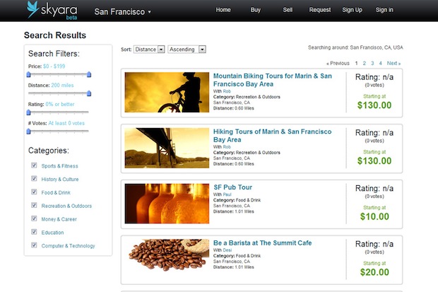 Key Skyara features include packaging, scheduling, booking and payments services and well as a Digg-like voting features and Skyara Requests, i.e. if a specific experience isn’t available on Skyara, consumers can request it and see if any vendor can customize their offerings.