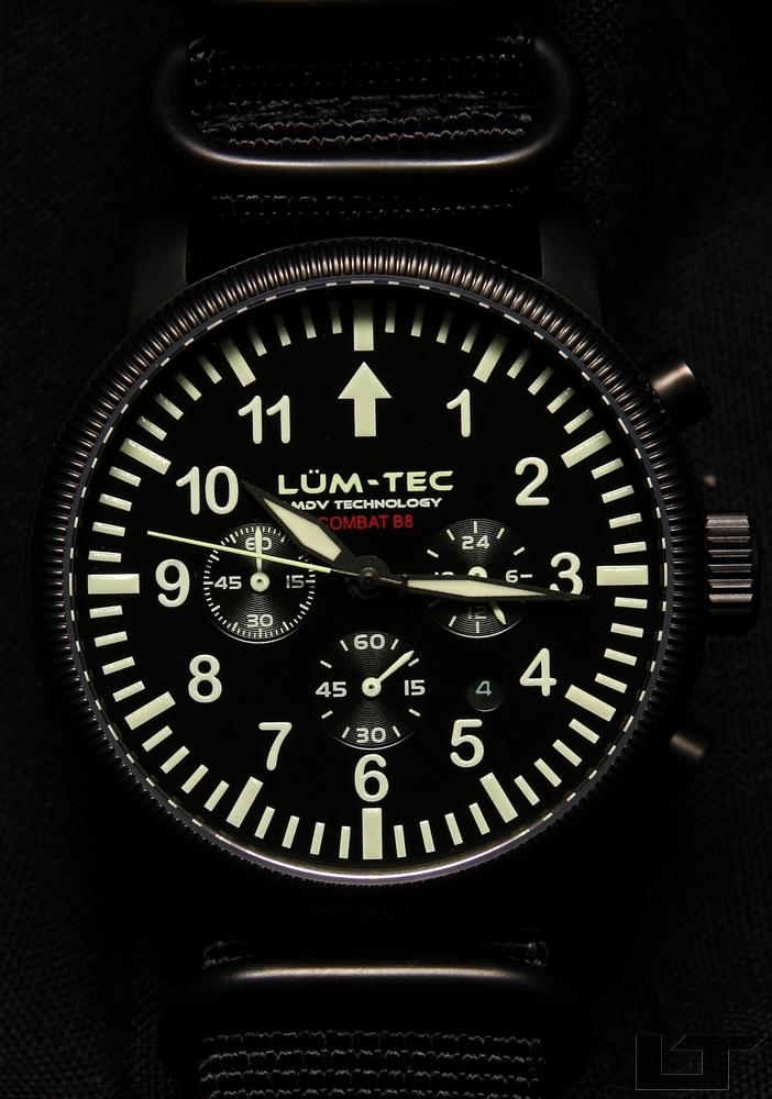 Lum-Tec just posted this striking shot of their new B8 chronograph. I love the styling and quality – Lum-Tec is great at PVD coatings and lume – but I’m sad, so sad that it has a Japanese quartz movement. Oh well.