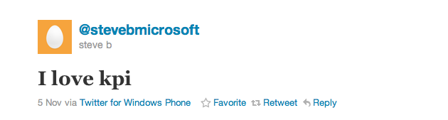 “I have a Twitter account. I’m just very private about who I really am on Twitter,” Ballmer said when asked. But then he went in a different direction and said he would Tweet from the stage. “What do you want me to tweet? I love KPI, how’s that?,” he asked. With that, he pulled out his new Windows Phone. “All right. I love KPI. Now, you know how to find me on Twitter.”