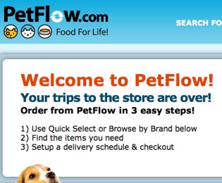 Petflow, a just launched startup, has raised $5 million from Westwood Ventures, to try their hand at this as well. Like Alice.com, Petflow is designed primarily to get people set up with the food they want and then have it delivered on a regular schedule automatically. Their prices are competitive based on a quick comparison of Eukanuba dog food. And shipping is a flat $5 on orders over $20, which is lower than anyone else that I can find.