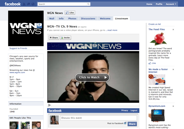 The “Livestream For Facebook” application allows you to take your current Livestream channel and embed it onto your Facebook page as well as manage multiple tabs and customize your viewer. Livestream also plans on added Facebook Credit capability for Pay Per View services in the near future.