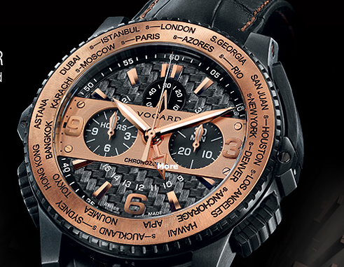 I’ve never been a big fan of gold on watches but I like how Vogard has put this whole thing together. What you’re seeing is a new version of the Vogard Chronozoner, a chronograph with instant time-zone changing. The original Vogards revolutionized GMT watches by allowing users to simply flip a little lever to set a new timezone. Now all you have to do is twist the bezel and you’re instantly showing the time in another country.