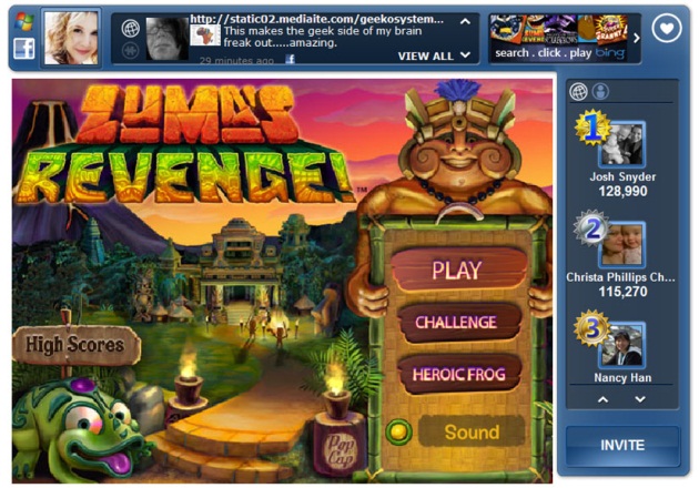 “MSN Games, Windows Live Messenger and Bing reach millions of consumers every month, and we’re connecting all those players — and their social circles — for the first time with a great games experience at the center.”