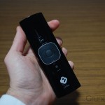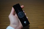 The remote is about the same length as a dollar bill and about a half inch thick in the center. It’s actually not all that comfy to hold since it’s so small. Maybe if there was a little more heft to it, but it feels about the same weight as a marshmallow. At least the QWERTY keypad on the backside feels great. The tactile response is very satisfying. Backlit keys would be wonderful for version 2.