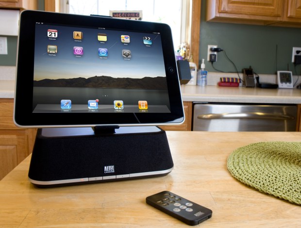 It costs $150, which seems a bit much, but it does allow you to dock your iPad in either portrait or landscape mode, and it looks like it provides decent oomph in the audio department. I think it would be pretty practical in a kitchen or office environment, where you can just plug it in, let it stream a show or two, and hear it clearly from across the room while you get dinner ready. Then again, most docks are practical that way.