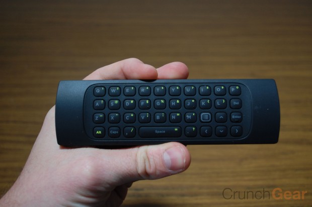 The remote works great, although version two should have some sort of orientation markers to better distinguish the top from the bottom, and backlighting on the tiny QWERTY keypad would be absolutely genius. The RF range is impressive and I can get about 40 feet away and still operate the Boxee Box. The dual-sided form factor sound strange in theory, but it never felt weird using or hold it. The keypad isn’t in the way when you’re using the navigational pad. It’s a good remote.
