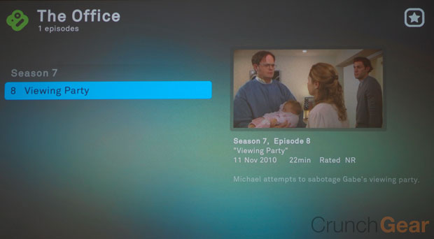 The difference between the desktop and standalone platforms is very noticeable in the available content area . Hulu’s self-described evil overlords clearly hate consumers and so the Boxee Box is forced to use Comcast’s Fancast site instead. This creates two problems in that there isn’t an HD button on Fancast, meaning the video quality is poo, and two, there simply aren’t as many programing options. But this might not be Fancast’s fault. Select The Office on the Boxee Box and one episode is available. At least it’s the latest one, but there are 11 episodes available through the desktop Boxee. This trend continues with How I Met Your Mother with only two episodes available on the Boxee Box with six on the desktop version. There are three Family Guy episodes to the desktop’s nine and so on. At least Star Trek Enterprise and MacGuyver are available in their entirety on both platforms, but don’t expect to get caught up on any modern show.