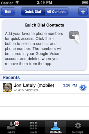 But you can make calls right from the app. You dial a number and it automatically takes you to the iPhone’s Phone app where it places the call from your Google Voice number by way of Google’s backend system.
