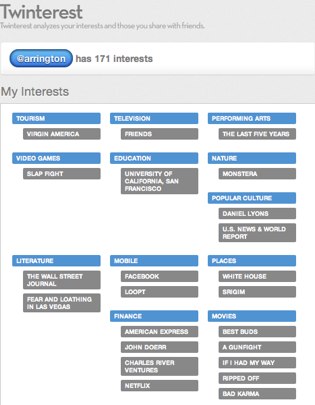 A few weeks ago we hinted at some of the personalization tools that Los Angeles based startup Gravity would be unveiling. Today they’re launching Twinterest – a tool that creates an interest graph – a list of things you probably love – based only on looking at your twitter stream.