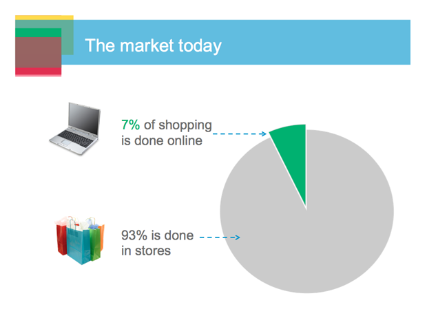 Wojcicki brought up multiple times that most people still think of online shopping and offline shopping as different channels and that Google is trying (really hard) to technologically change this perception. While 42% of in-store sales are motivated by online shopping searches according to Wojcicki, 7% of purchasing is currently done online while 93% is still done in IRL stores.