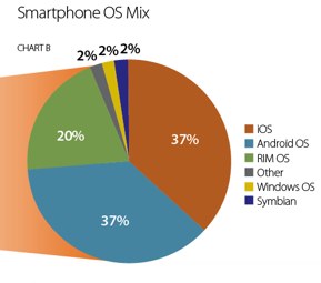 the network, with an 8% increase month-over-month and 37% impression share. Apples iOS also took a 37% impression share, and dropped from a 49% impression share in September. RIM followed Android ad iOS for a 20% impression share in October.
