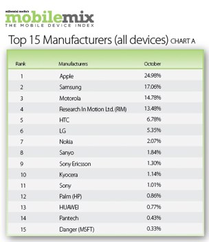 In terms of actual manufacturers, Apple once again took the top spot for the thirteenth month in a row, representing 25% of the manufacturers impression share in October. Samsung came in second with 17% and Motorola followed closely as third, with a 15% impression share.