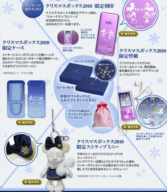 Christmas time, limited edition time. In Japan, Sony today announced [JP] the so-called “Walkman S Series Disney Character Christmas Box”, which contains the Walkman NW-S750 big S released earlier this year. Not too surprisingly, buyers get the player with a Christmas design (showing Mickey and Minnie Mouse) and a limited edition wallpaper.