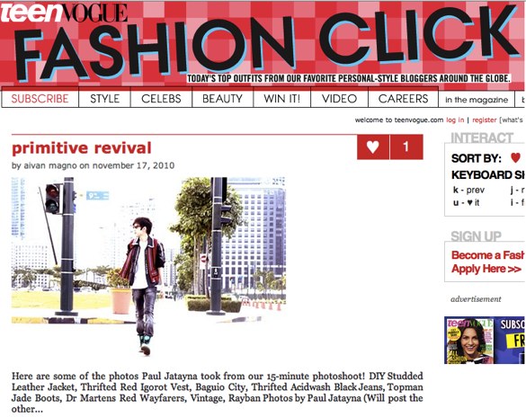 Sites like Fashism, Go Try It On and Weardrobe have shown that there is intrinsic value in the ability to share photos of what you are wearing and get feedback on your style. So it makes sense for fashion magazines to start launching similar efforts as a way to build a community around their online content. Conde Nast’s Teen Vogue property is launching its own user generated street style fashion platform today, called Fashion Click, which is powered by content marketing company Tidal Labs.