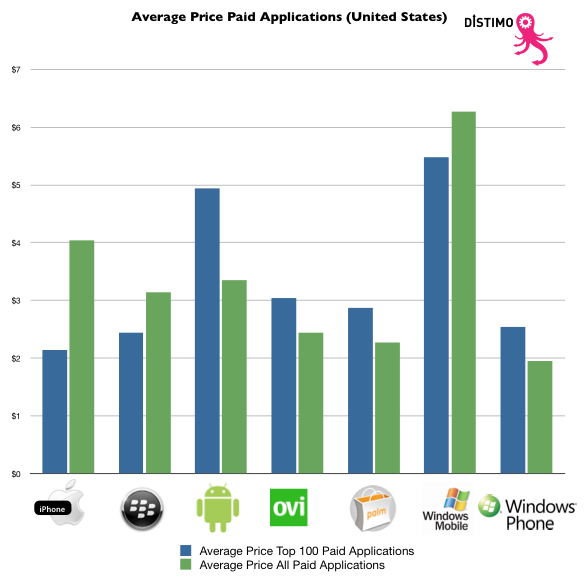 Prices for applications in Windows Phone 7 Marketplace are largely the same as those in other major app stores, including the App Store for iOS devices and Android Market, but significantly lower than apps in Windows Marketplace for Mobile (6.x).