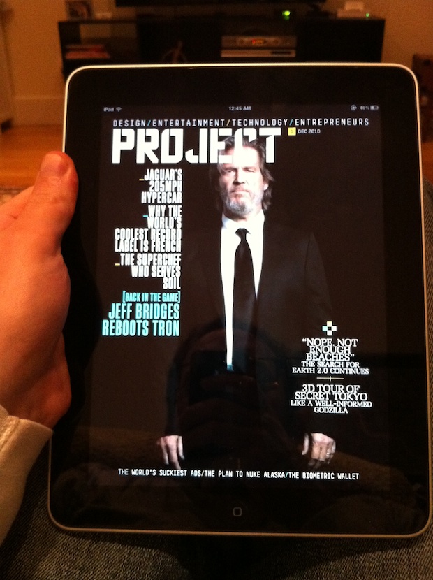 The Project app itself is a free download, but you have to buy the issues. The first one, with Tron: Legacy star Jeff Bridges on the cover, is $2.99. But apparently that’s a one-time price for the whole month and you’ll get new content every once in a while — at least I think that’s how it’s going to work.