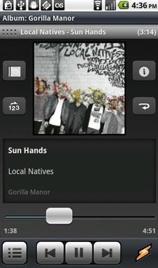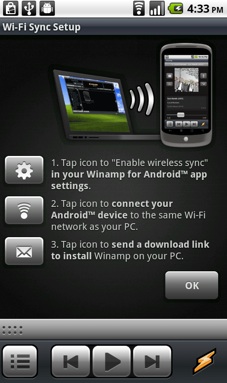 Just like with iTunes, Winamp lets you mange and play your digital music collection. You can even do a one-click import of all your non-DRMed music from iTunes. You can create playlists, search by song, artist, or album, and listen to Shoutcast Radio. Click on an album cover as you are listening and you get discography information, news, and meusic reviews from AOL Music. And while Android and Google will support over-the-air syncing for music, Winamp’s Wifi syncing solves the problem of getting music from your desktop to your phone effortlessly.