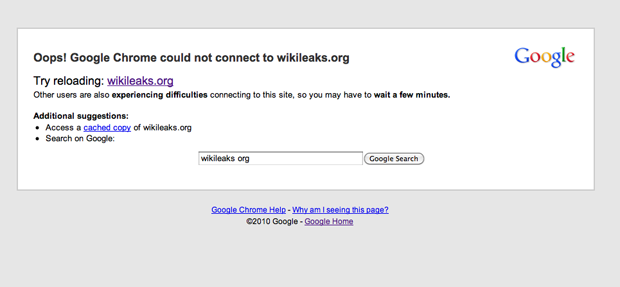 According to Michael Van Poppel, the Department Homeland Security (what aren’t they involved with these days?) also reported the takedown. Neither Amazon or WikiLeaks has made any direct comment on the hosting change.