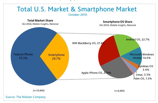 In October, Nielsen reported that Android had passed the iPhone and BlackBerry to become the popular operating system for people who bought a smartphone in the past six months.