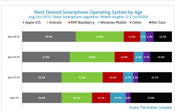 Those over 55 were markedly less certain than younger mobile users, with 27.8 saying they weren’t sure what kind of device they wanted next, compared to 12.2 percent of those 18 to 24.