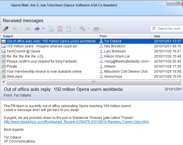 Nevertheless, the actual news can be gathered by browsing the emails to von Tetzchner: Opera has apparently hit the 150 million user milestone.