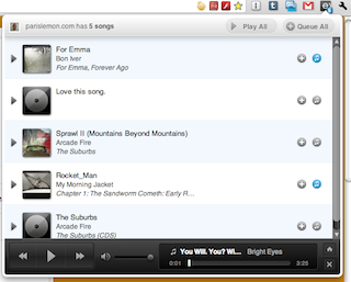 So. The big question. Is all of this legal? It would seem so because exfm isn’t actually hosting any music at all. All they’ve done is create a player (by way of the extension) that allows you to find and play music hosted elsewhere. It’s a smart idea, and a great execution.